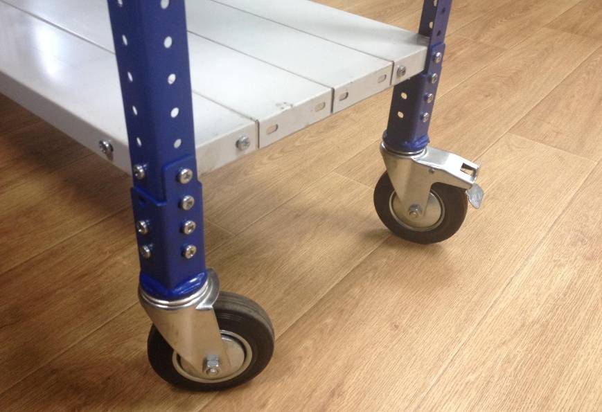 - Создание металлического стеллажа с отдельной полкой для каждого колеса;