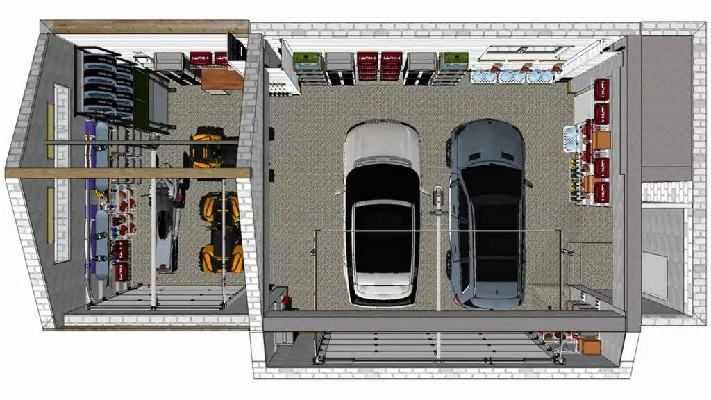 Обустройство гаража включает в себя такие составляющие, как выбор и подготовка материалов, расчет конструкции и подготовка средств для сборки, конструирования и монтажа. Если задумано выполнение стеллажной системы, то обязательно создается предварительный список предметов, которые будут храниться в ней