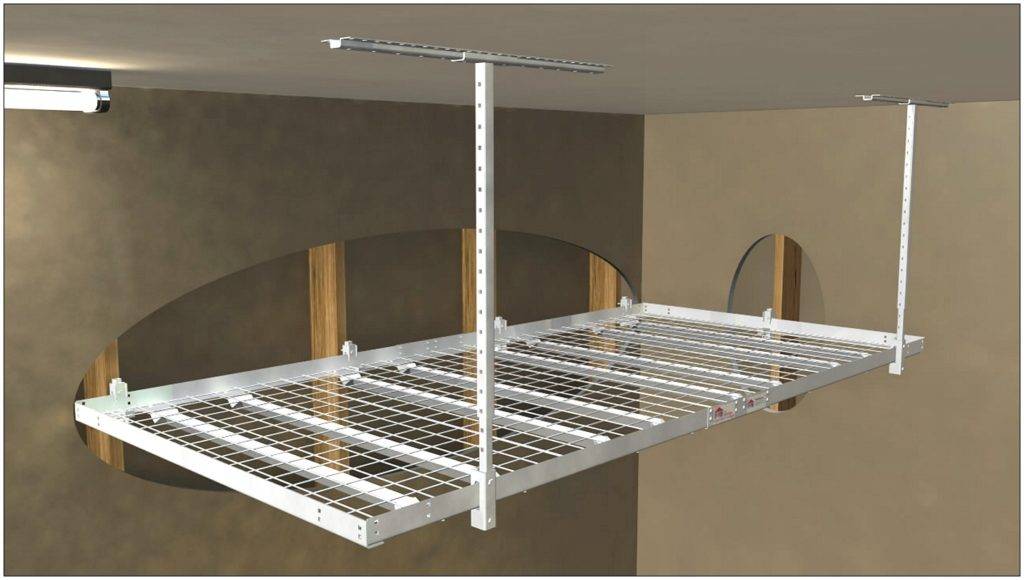 Подвесные, зафиксированные в подпотолочном пространстве. Они оптимальны для хранения редко используемых вещей и материалов