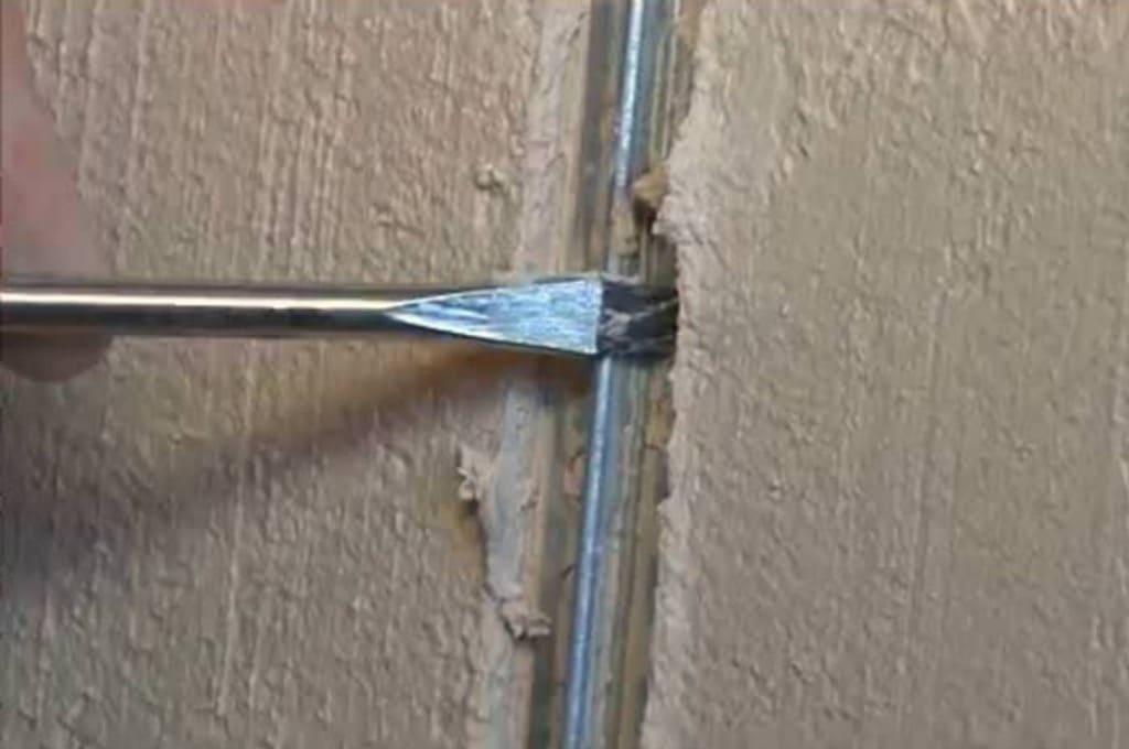 Особое внимание уделяют очистке стен от грязи, из-за которой в будущем штукатурка может осыпаться. Чтобы избавиться от загрязнений или застывшего цементного раствора, пользуются металлической щеткой