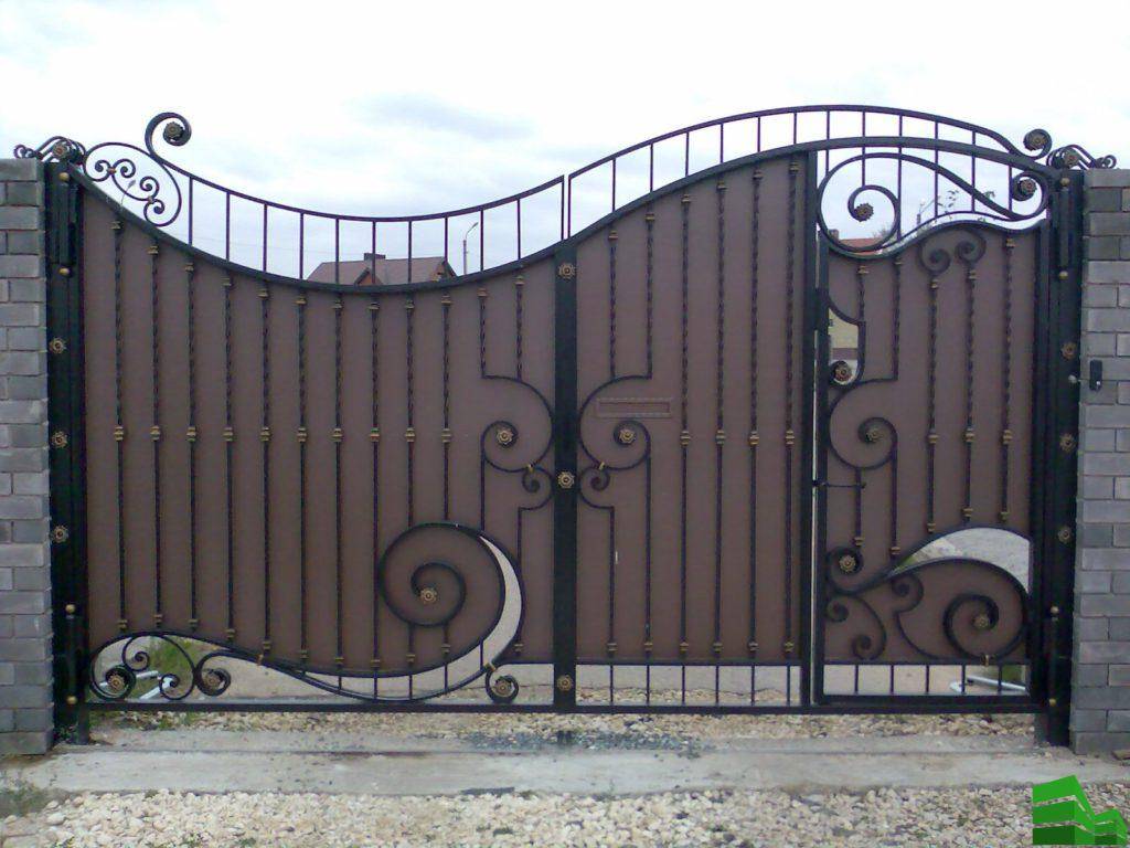 Главное условие — ворота не должны быть глухими. Предпочтение отдают сварным металлическим конструкциям с абстрактными геометрическими или растительными узорами.