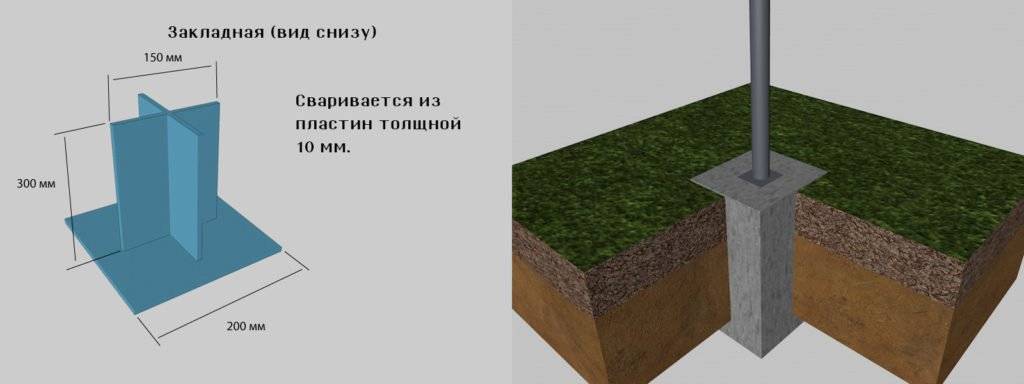 - Выставлять их необходимо поочерёдно, проверяя вертикаль с помощью уровня. Теперь опоры можно приварить к закладным.