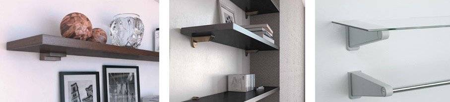 Полки обычно закрепляют при помощи металлических мебельных планок с прорезями.