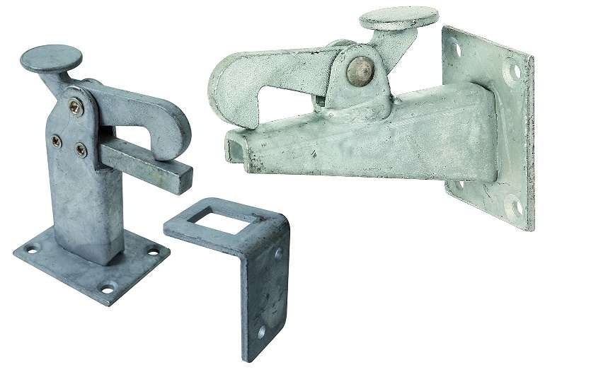 Такое приспособление отличается от тех двух, которые описаны выше, довольно сложной конструкцией. Изготовить его своими руками уже не так просто. Усложняется процесс изготовления тем, что фиксация открытых ворот осуществляется автоматически, но зато такие стопоры гораздо удобнее в использовании. Ведь достаточно довести до них створку, и они ее сами надежно зафиксируют.