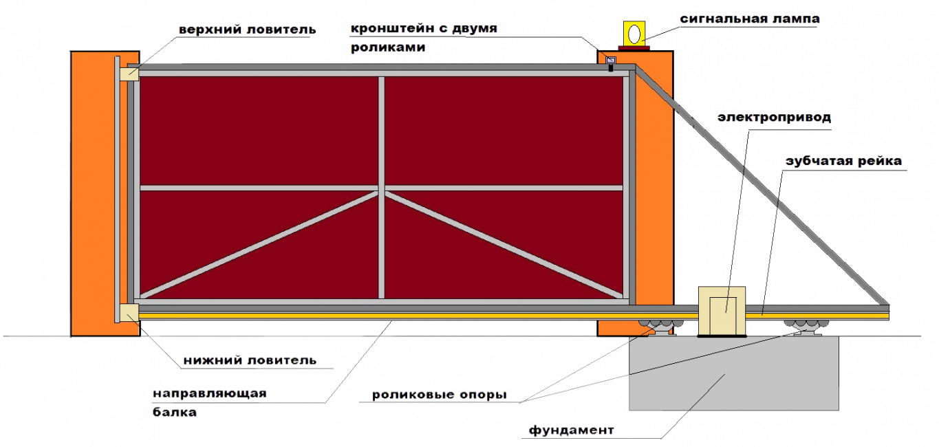 Принцип действия и схема откатных ворот