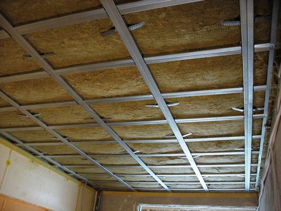 По принципу выполнения монтажа утепление потолка не отличается от обработки стен помещения. Материал закрепляется внутри каркаса, сооруженного из металла либо деревянных брусьев. Для дополнительной защиты каркас перекрывается листами гипсокартона, вагонкой или другим отделочным материалом.