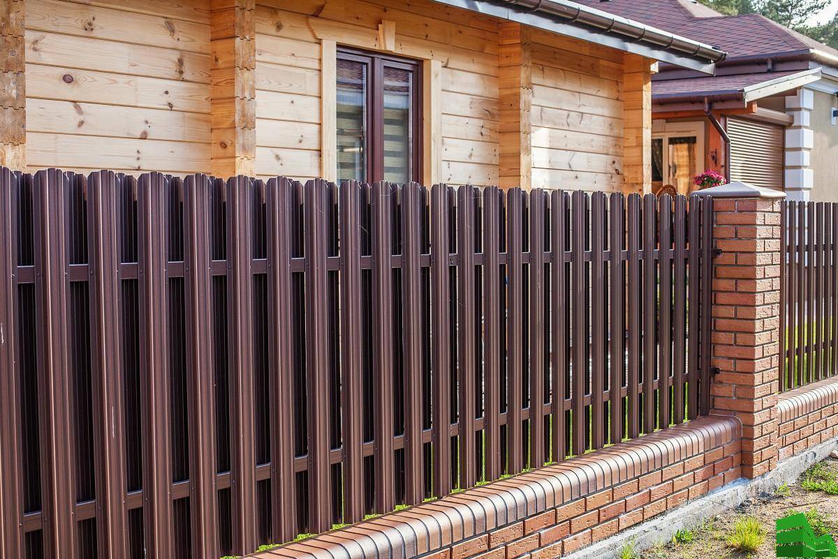 Вопреки расхожему мнению, деревянные заборы гармонично смотрятся не только за городом, но и как способ ограждения городского частного сектора, особенно, если под деревянной изгородью есть каменный, бетонный или кирпичный фундамент.