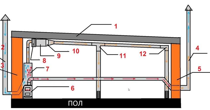 Схема циркуляции воздуха в стоянке-гараже со смотровой ямой