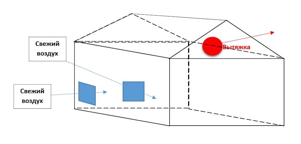 надо располагать вытяжные отверстия так, чтобы поток воздуха попадал во все уголки помещения