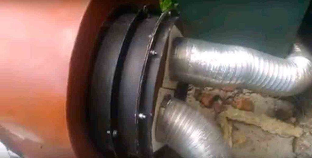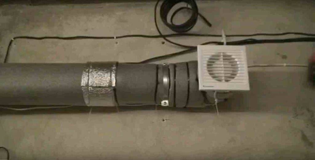 - Соединить две трубы: асбестовую со спиралью и пластиковую с установленным вентилятором.