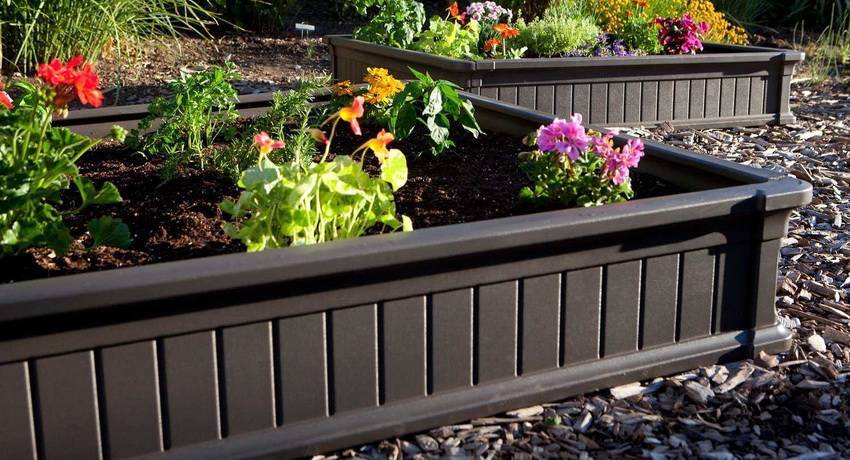 Благодаря широким возможностям цвета и фактуры, грядки из пластиковых панелей отлично смотрятся в любом дизайне