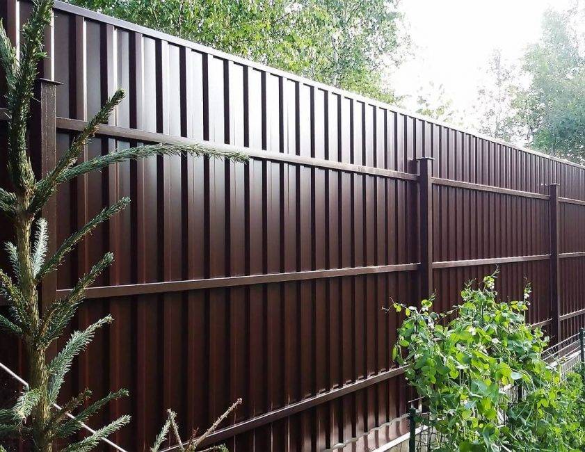 - Профнастил подвержен сильному влиянию ржавчины. По этой причине стоит заранее позаботиться о защитном покрытии, до ввода изгороди в эксплуатацию.