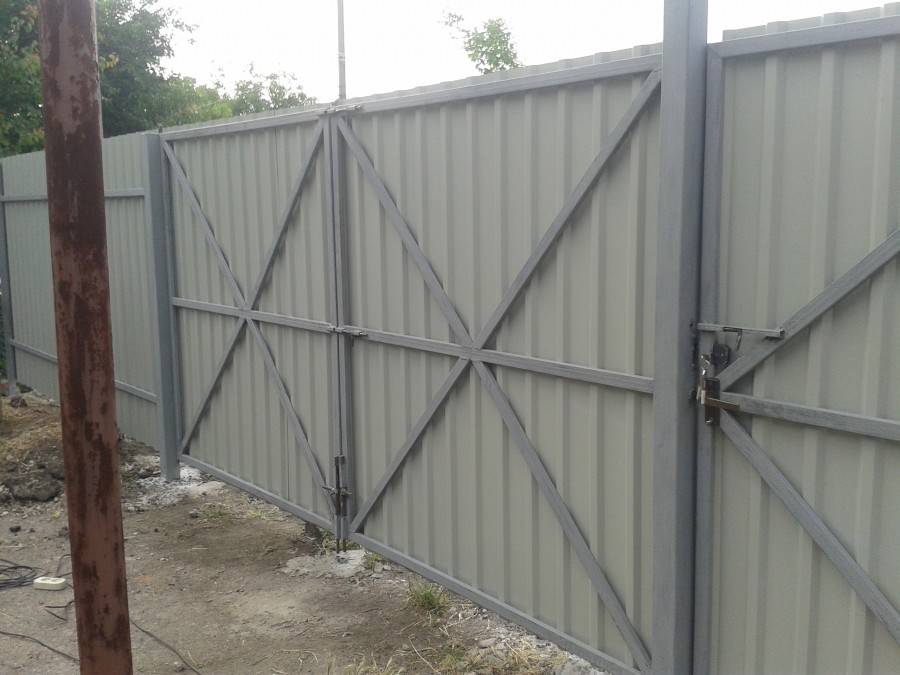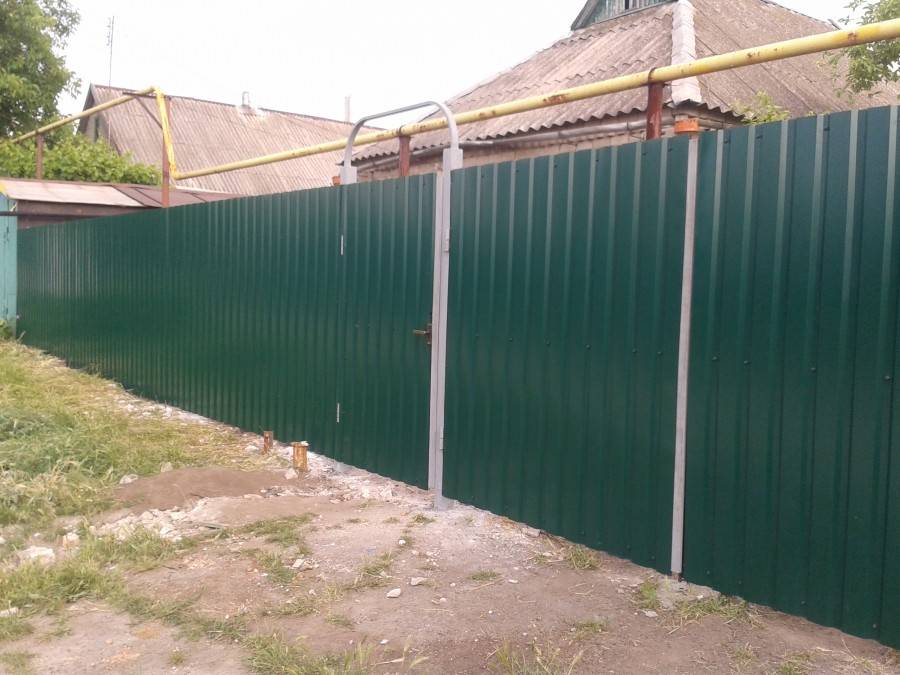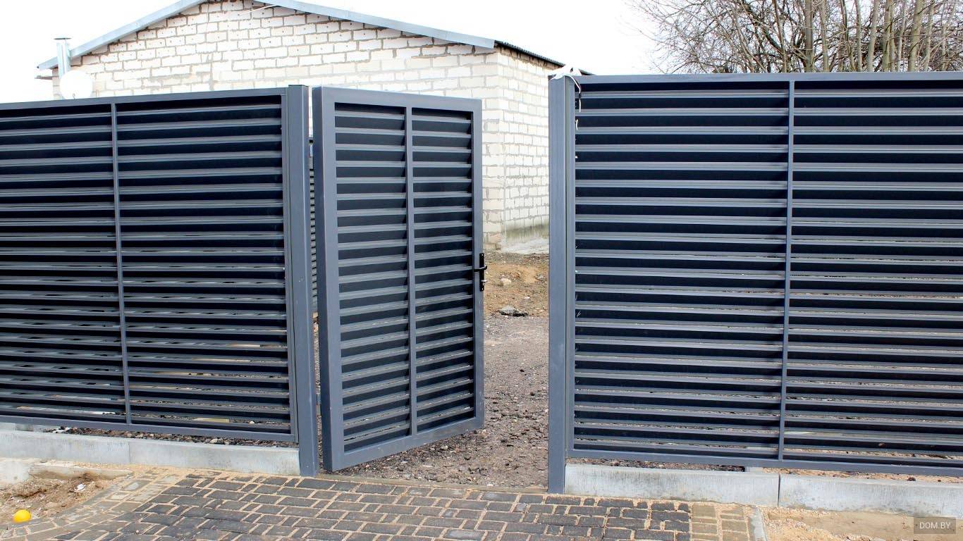 Ограждения из металла весьма популярны. Если остановить свой выбор на таком виде забора, то не возникнет сложностей с его монтажом, а материалы можно приобрести по доступным ценам. Он полностью закроет участок от любопытных взглядов соседей. Изгородь прослужит в течение длительного срока. В качестве материала для создания калитки чаще всего используется профлист.