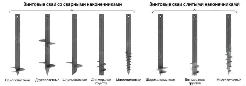 Существует много разновидностей винтовых свай. Они различаются по нескольким позициям: