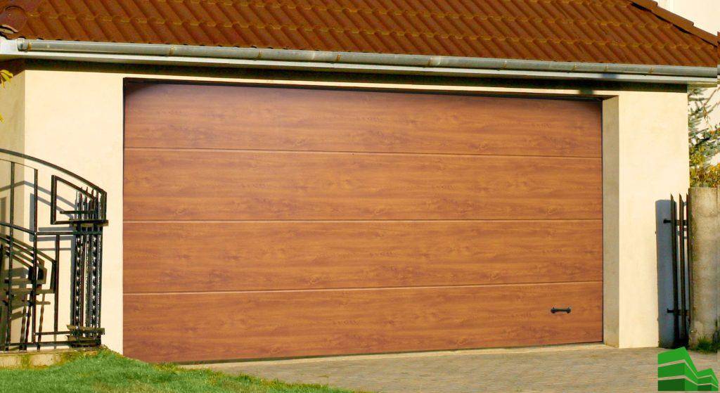 Этот вид появился не так давно. Конструкция представляет собой полотно, которое состоит из секций. При открывании такие ворота постепенно заезжают под потолок, преломляясь при этом. В основе подобных ворот лежит направляющие с цепной передачей и пружинный механизм. Главное достоинство подъемно-секционной конструкции – экономия пространства.