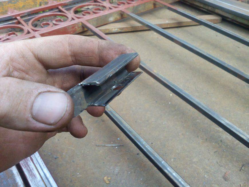 - К каркасу ворот и калитки привариваются базовые элементы.
