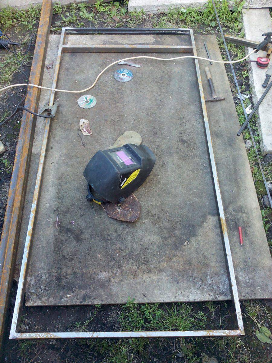 Размер этой детали должен отличаться от рамы гаражных ворот в меньшую сторону. Каркас требуется сделать так, чтобы он без труда попал в проём, а створки плотно легли на внешнюю часть рамы. Для изготовления каркаса для створок берут стальной уголок либо прямоугольный профиль. Но со стальным уголком работать более комфортно:
