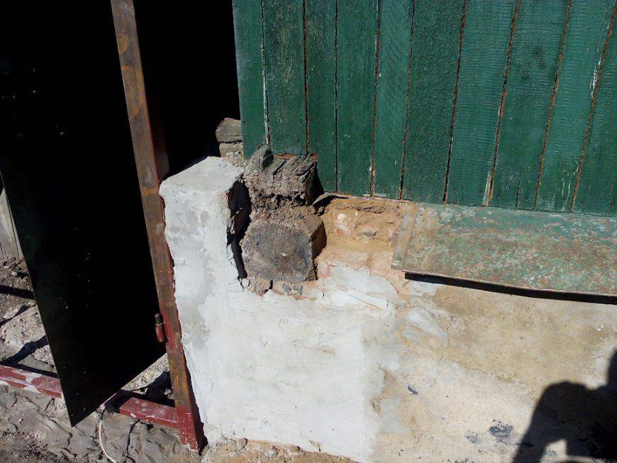 Каркас выполняется из металлического уголка, который приваривается по всему периметру дверного проема. Таким образом отделывают откос внутри и снаружи. Между собой внутренние и наружные уголки сваривают металлическими полосками в нескольких местах. Должна получиться каркасная рамка.