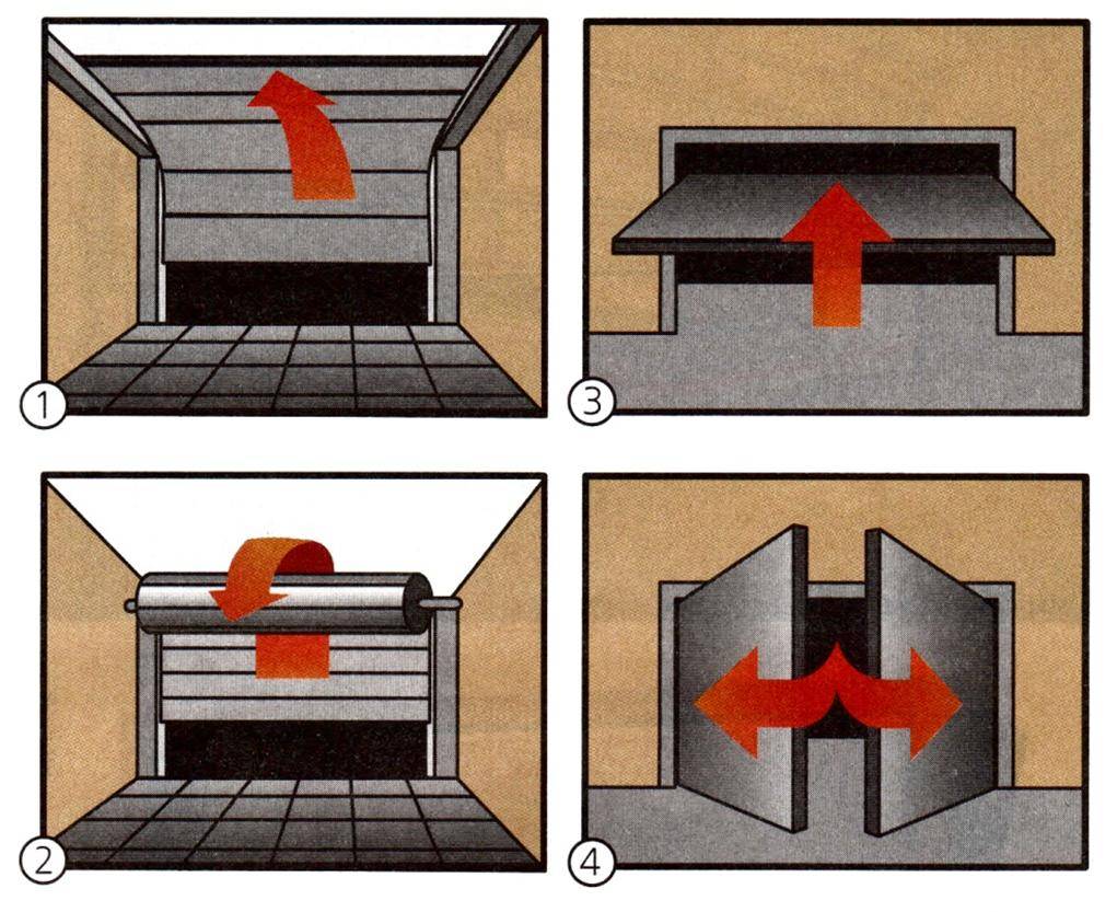 Основное отличие ворот разных типов — в принципе их работы. От того, где располагается полотно или створки при открытии, зависит необходимый размер и проема, и помещения.