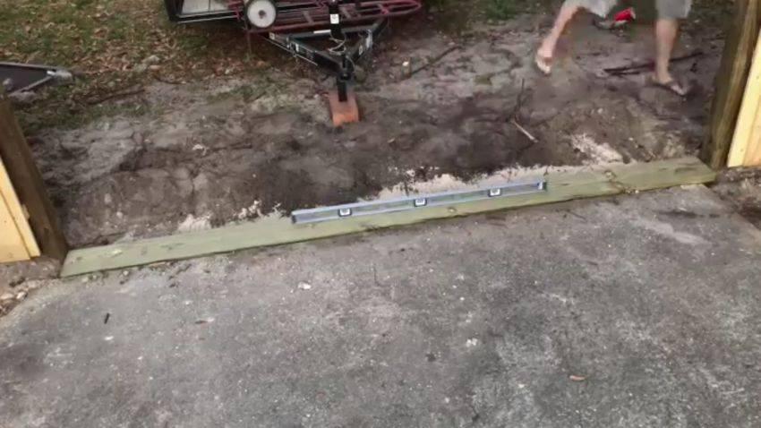 - В соответствии с шириной ворот из профнастила вырываются две ямы 1,5 м глубины.