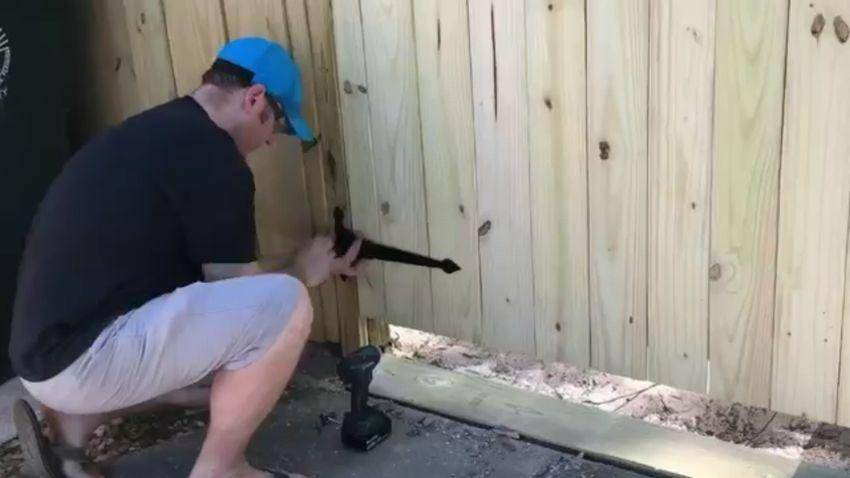 Для крепления штакетин лучше использовать соморезы из нержавеющей стали. После того, как вертикальные планки набиты, конструкцию переворачивают, отмеряют и вставляют подкос.
