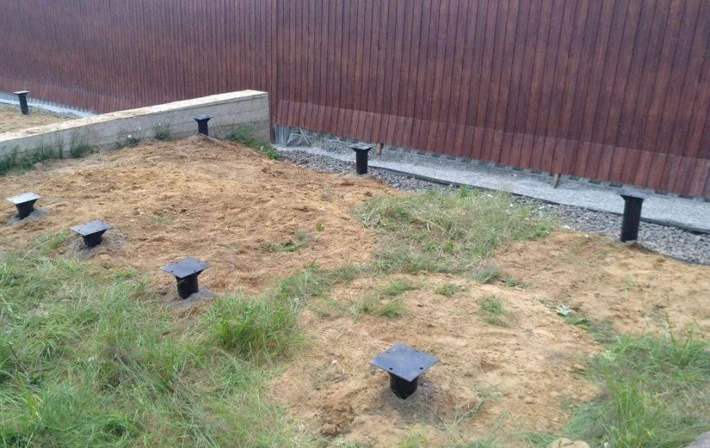 При прокладке труб не забываем, что дренаж должен проходить на полметра ниже опорной конструкции.