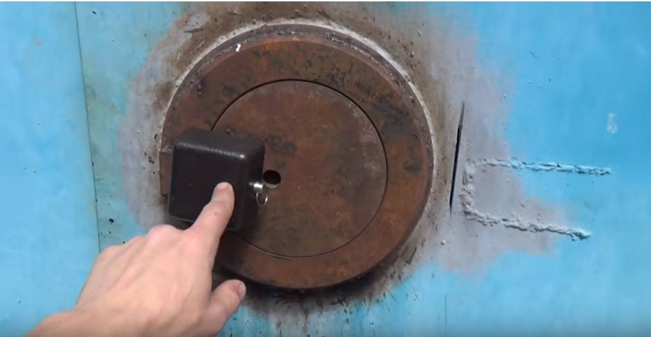 Чтобы не было возможности вырвать, высверлить или просто выбить люк, на него устраивается дополнительный замок, который его защищает, однако его достаточно просто сбить обыкновенной кувалдой, поэтому и навесной замок на люк, также должен быть защищен. Для этого, сверху и со сторон привариваются металлические пластины, чтобы угонщик не мог размахнуться и сбить его.