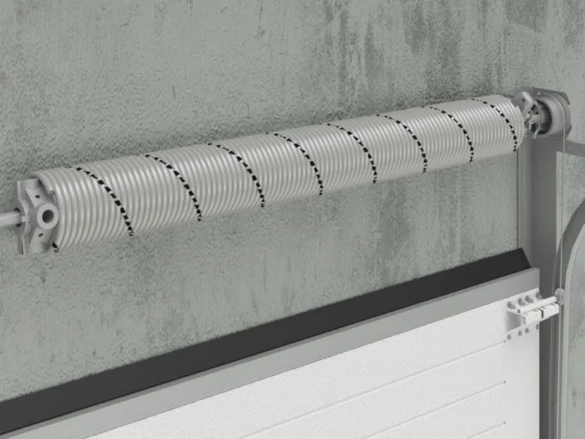 - Торсионный механизм работает за счет скручивания пружины, которая устанавливается непосредственно на вал. Торсионным механизмом оснащают ворота для средних и больших проёмов, или же при комплектовании полотна ворот калиткой. Данная система также нуждается в периодической регулировке: для гаражно-бытовых ворот регламент проведения сервисного обслуживания – раз в год, для промышленных ворот – раз в полгода. В дополнительную комплектацию входит устройство безопасности от обрыва пружины с храповым колесом.