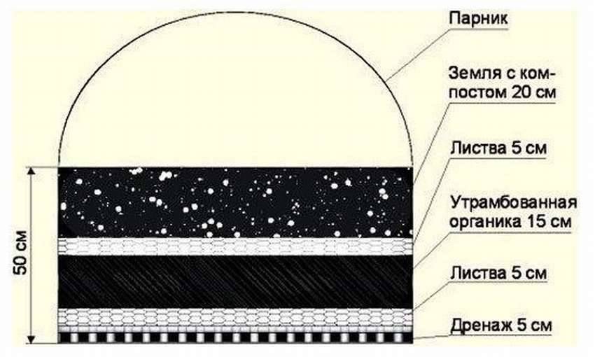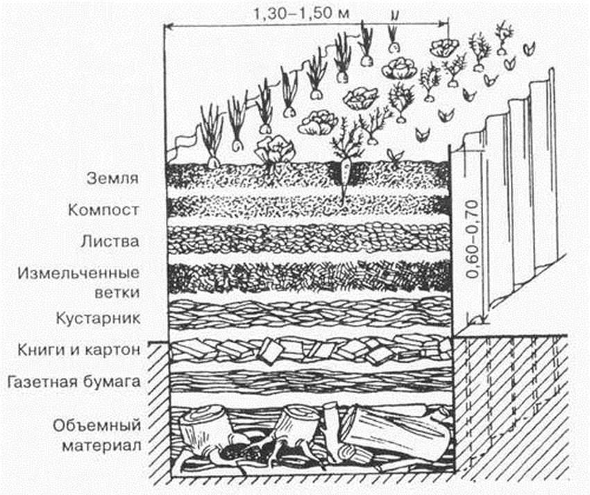 В обязательный состав каждой грядки входит грунт, дренаж и биотопливо (которое станет перегноем, дающим основное удобрение корневой системы).