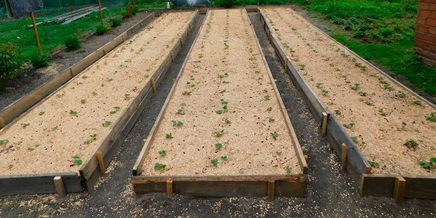 Самыми распространенными и устойчивыми считаются грядки из досок. Если перед засыпанием землей проложить их рубероидом, то они прослужат очень долго, поскольку будут изолированы от влаги и гниения.