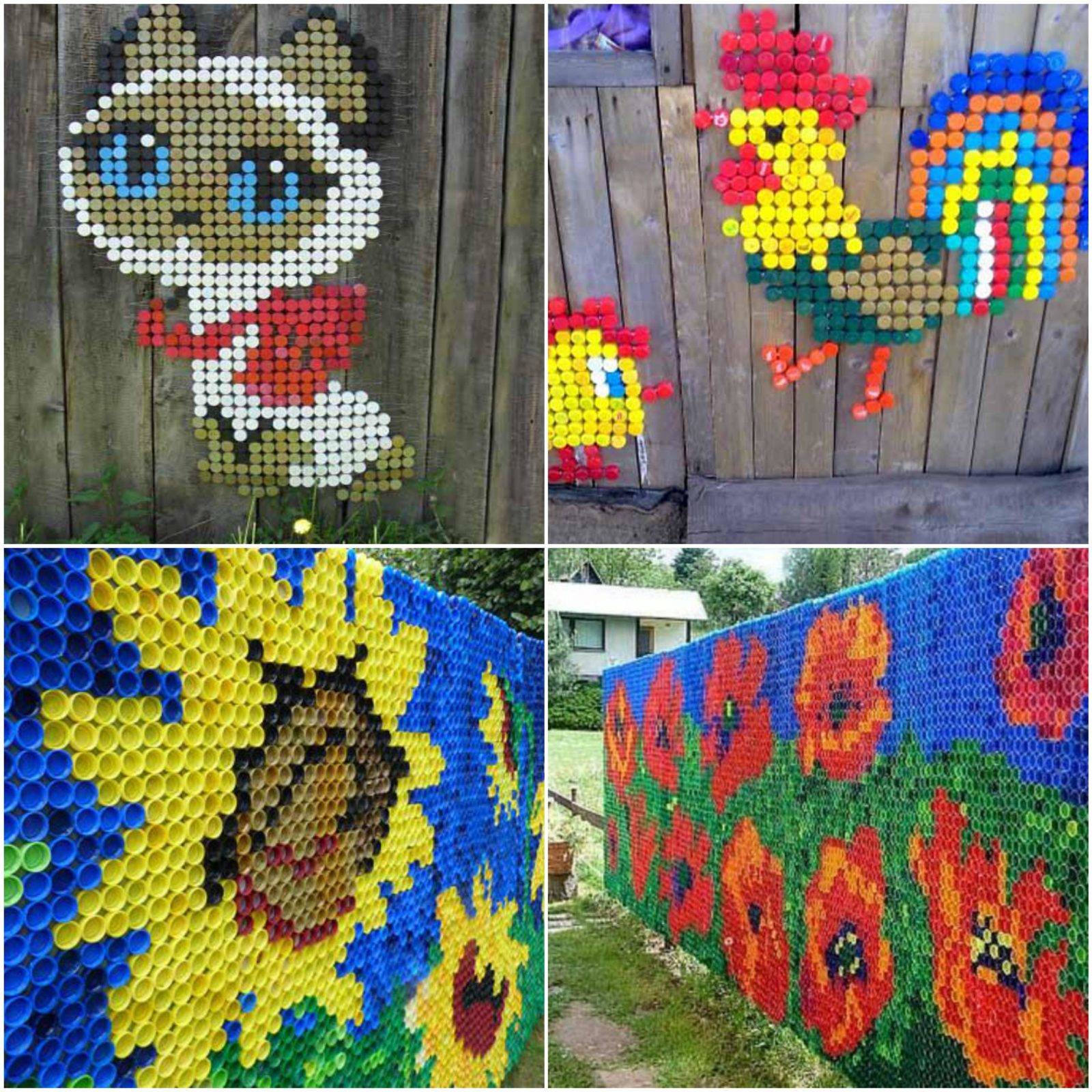 Кстати, крышки от бутылок тоже пойдут в ход. Ведь из них можно сделать подвижную ограду, да еще и с любым рисунком.