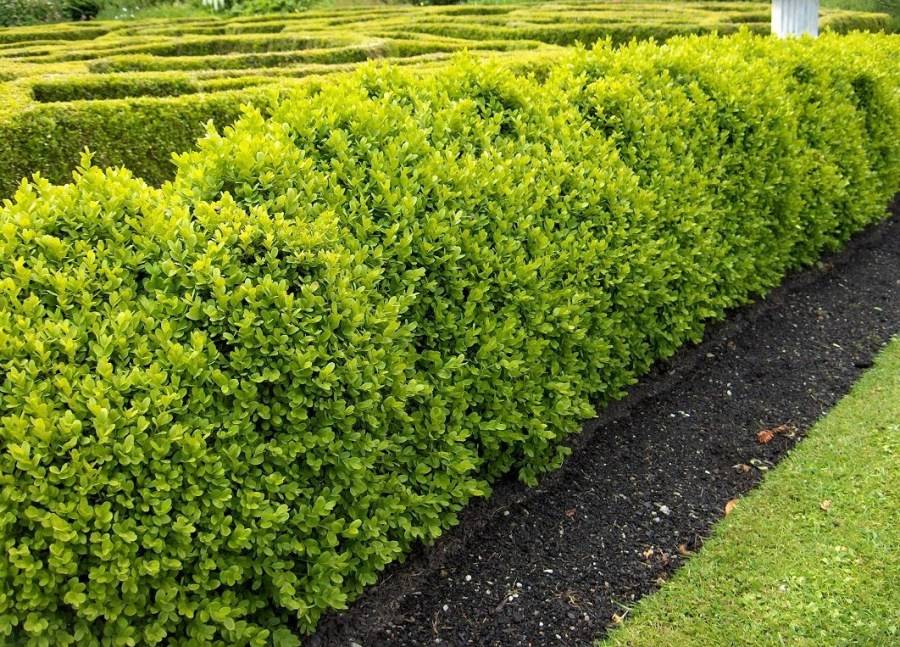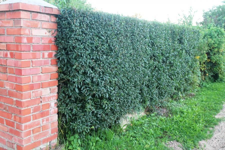 Среднерослые – это такой живой забор из кустарника (ива, шиповник, боярышник, барбарис, магония падуболистная, бирючина, кизильник черноплодный, красная и черная бузина, гортензия древовидная, спирея, калина, кизильник блестящий, сирень, форзиция, японскя айва, а также – самшит).