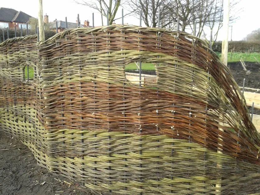 Опытные мастера могут плести узор не одним прутом, а пучком – такая ограда получается более рельефной. Для воспроизведения такого эффекта нужен навык, так как выбираются особенно гибкие и тонкие прутики, и надо уметь работать с ними.