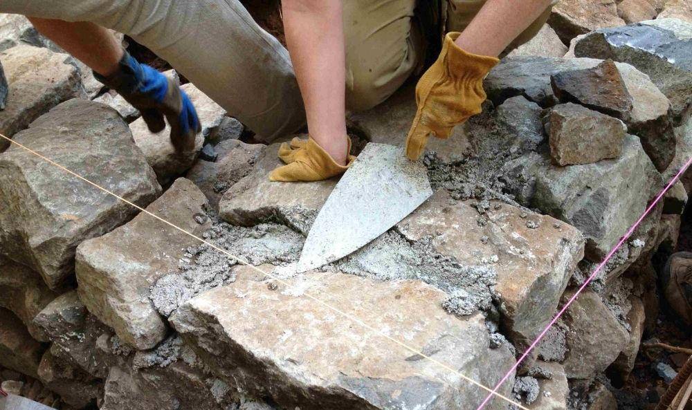 - Заполняйте внутреннее пространство граней пролета камнями, а образовавшиеся зазоры плотно забивайте цементной смесью. Укладку камней следует осуществлять гладкой стороной вверх.