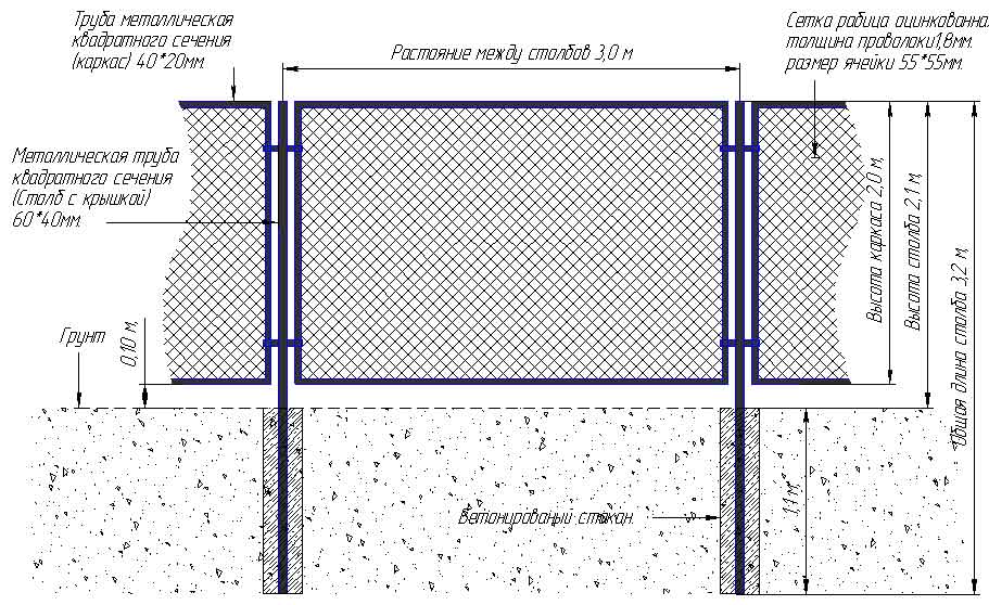 Способ установки опорных конструкций зависит от размеров, веса и места расположения забора из сетки.