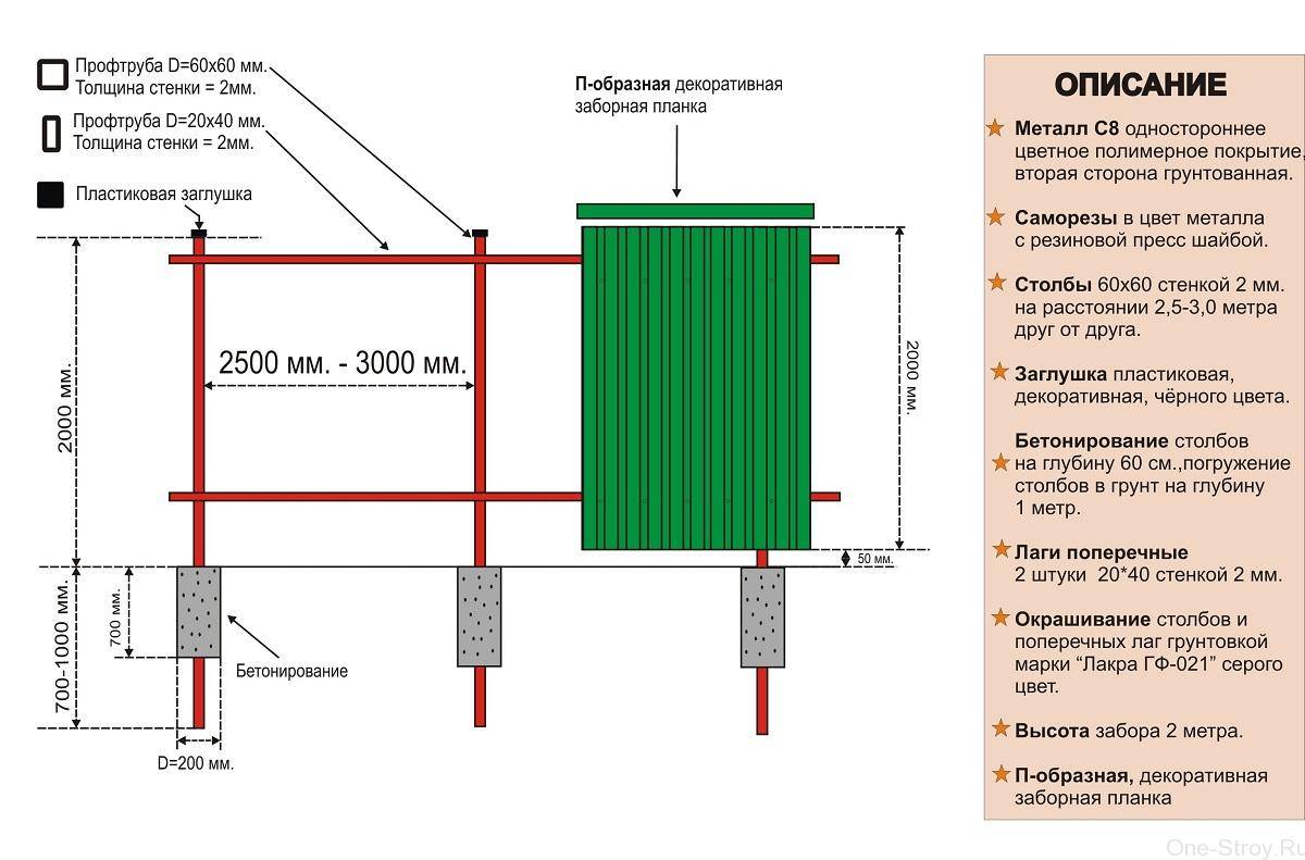 Рекомендуем материал по теме! Подробное описание технологии устройства забора из профнастила от А до Я