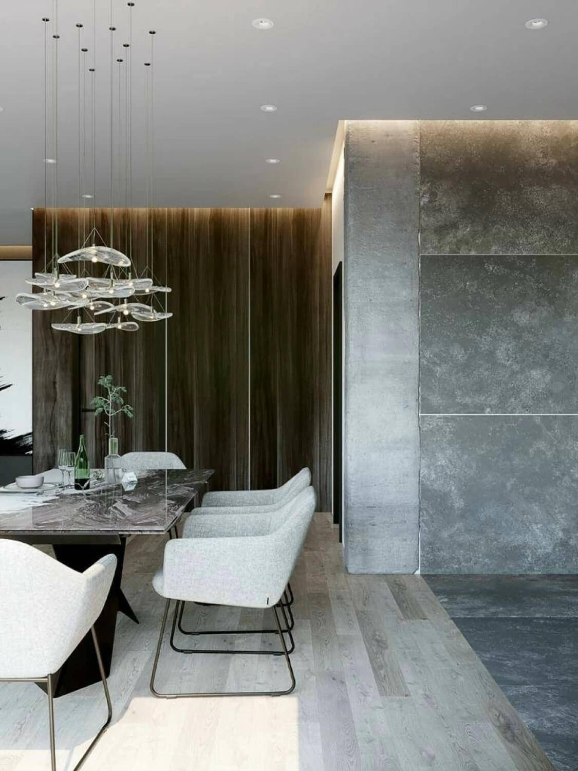 Преимущество совмещения с лофтом в том, что в интерьере отлично уживаются неотделанный бетон и дерево ценных пород, а потолок с промышленными разводами выгодно оттеняет белые стены. В таком дизайне присутствует простота внутренней архитектуры и отделки. Только посмотрите на фото с примерами подобного синтеза: